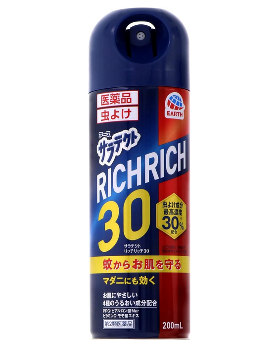 サラテクトミスト リッチリッチ30: ディート30%配合で、強力な虫除け効果を発揮します。無香料で、肌への刺激が少ないのも特徴です。