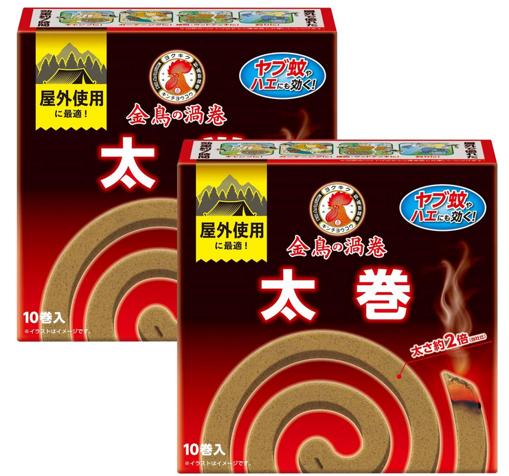 金鳥の渦巻 蚊取り線香 太巻き: 植物性由来のピレスロイドを配合し、低刺激で安心して使用できます。伝統的な蚊取り線香の香りで、どこか懐かしい気分にさせてくれます。ヤブ蚊やハエにも効きます。