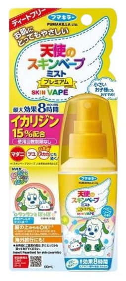 天使のスキンベープ 虫除けスプレー イカリジン ミストタイプ: イカリジン15%配合で、小さなお子様(生後6ヶ月以上)から使える低刺激処方です。ミストタイプで、肌にやさしく、ムラなく塗布できます。