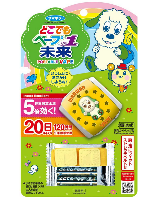 どこでもベープNo.1 未来セット 虫よけブレス: 手首や足首に付けるタイプの虫よけです。ディートフリーで、天然精油(ユーカリ油)が主成分なので、小さなお子様にも安心して使えます。
