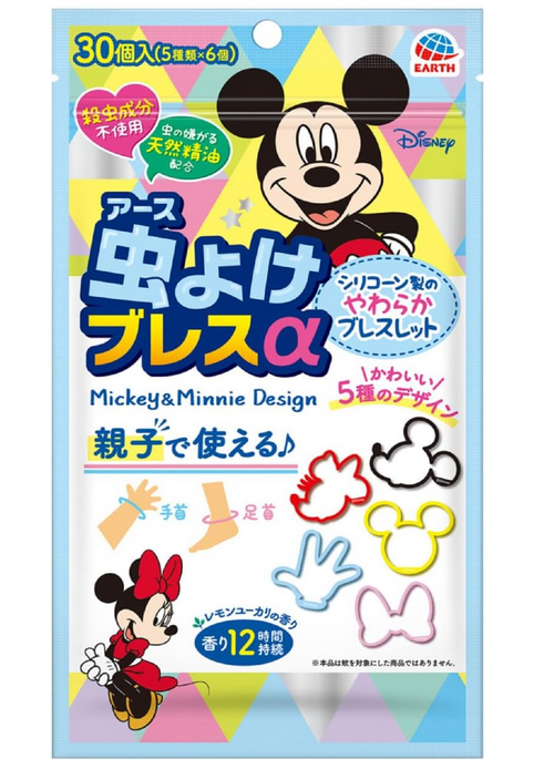 虫よけブレスα ミッキー&ミニー [30個入]キャンプ アウトドア (アース製薬): 虫の嫌がる天然精油を配合したブレスレットです。●シリコーンのやわらか素材のブレスレットで、手首・足首に簡単につけることができます。